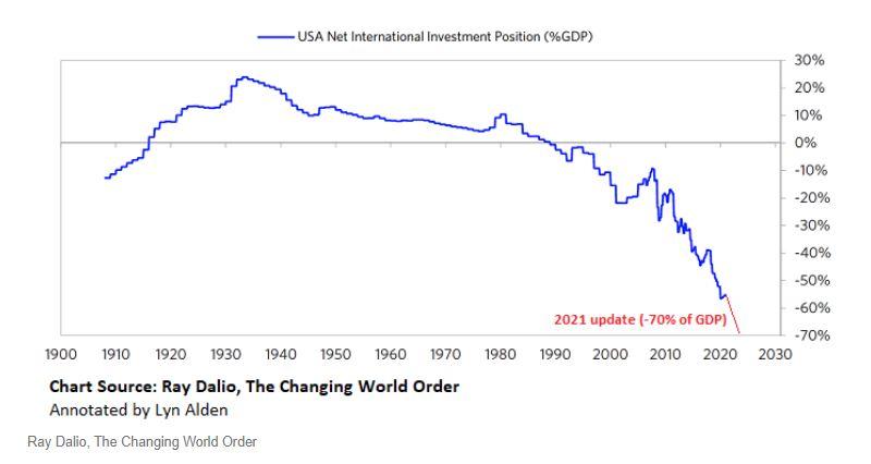 One good thing about analyzing very large companies like Apple, Microsoft, and Nvidia with hindsight is that you can say conclusively that none of them deserved their huge stock price surge. Their size is such that their profits could not possibly have grown fast enough to justify a 20% quarterly gain on top of their gains of the first three quarters of 2021. If we know, therefore, that the prices of U.S. mega-caps are not justified by their economic performance, why are they so high? Because they have pulled in capital from all over the globe seeking growth and safety in a world where growth has largely (but not exclusively) been confined to American companies and safety has meant that the earnings yields on blue chip U.S. companies (even with price-to-earnings ratios above 35) exceed what one could earn from the bond market, many regarded them as being bond substitutes. Years ago we even coined an acronym – TINA – for the idea that as far as U.S. stocks are concerned, There Is No Alternative.