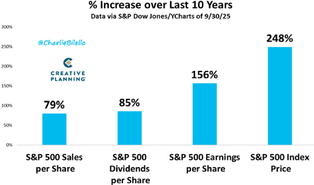 The stock market rally continued, with the S&P 500 adding another 8.1% last quarter to bring its year-to-date gain up to 14.8%. Once again, technology was the leader, as its 13.2% quarterly gain was driven by sky-high aspirations for growth in the artificial intelligence trade(AI) sector. The only declining sector was consumer staples (think Pepsi and Procter & Gamble), which posted a -2.4% loss. The AI boom is mainly lifting technology stocks (especially those that produce the semiconductor chips that power the search for greater intelligence), but it’s also the boosting the utility stocks that provide the power, the real estate stocks that provide the land where data centers are built, the industrial stocks that build the plants and cool them so they don’t overheat, and the financial stocks that raise the money for all of this. There is a certain gold rush mentality in the stock market right now, which is exciting but also increasingly concerning.
