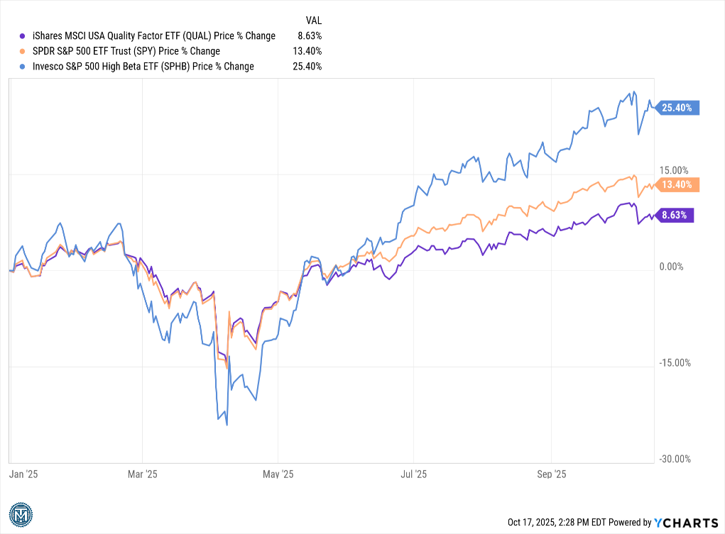 Quality, as a stock attribute, sounds like something you definitely want. It is usually defined as having a strong balance sheet, strong cash flow, and a leading position in a growing industry. Many believe that companies exhibiting these characteristics have better stock performance over time, and they are generally correct. That said, “quality” historically delivers its best performance during downturns (when poorly financed companies with declining cash flows tend to decline much, much more). While no investment manager ever says that they focus on low-quality companies, the fact is that those companies tend to perform better when speculative fever is high. Some of the biggest winners this year are either highly leveraged or very vulnerable to disruption. This has been especially true since June: