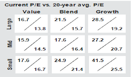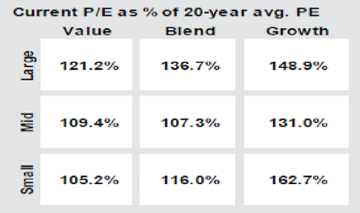 In the charts preceding this Commentary, I’m trying to emphasize that U.S. stocks are really expensive relative to market history. I want to stress that this does not mean that stock prices are going to fall meaningfully anytime soon. It simply means that there is no “low hanging fruit” (attractive opportunities at cheap prices) anymore. Companies and industries that have above average growth prospects are currently fully priced to reflect their potential. Today, you have to pay much higher prices for the opportunity to earn superior returns, and some of those opportunities won’t pan out.